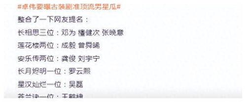 首先,咱们得聊聊卓伟这次爆料的视频内容。据悉,这些视频涉及多位当红古装顶流明星,包括但不限于某位当红小花旦、某位实力派男演员以及某位流量小生。视频内容可谓是五花八门,有在片场休息时的亲密互动,有在后台换装时的尴尬瞬间,还有在酒店房间内的私密时光。